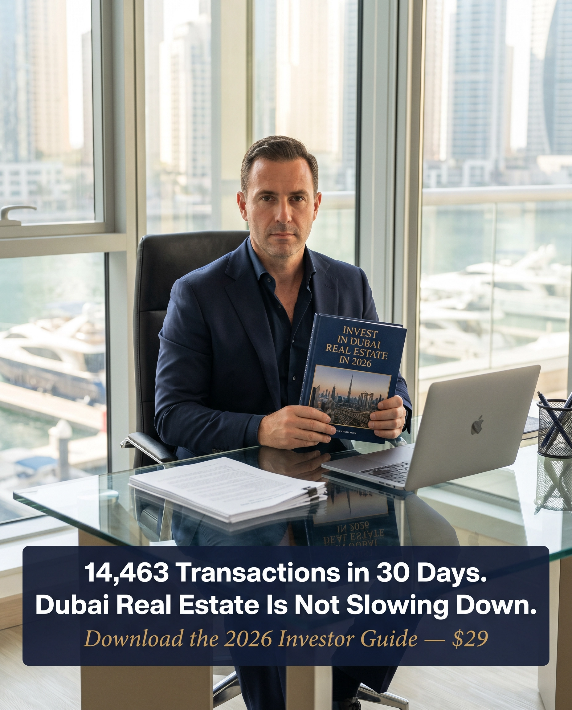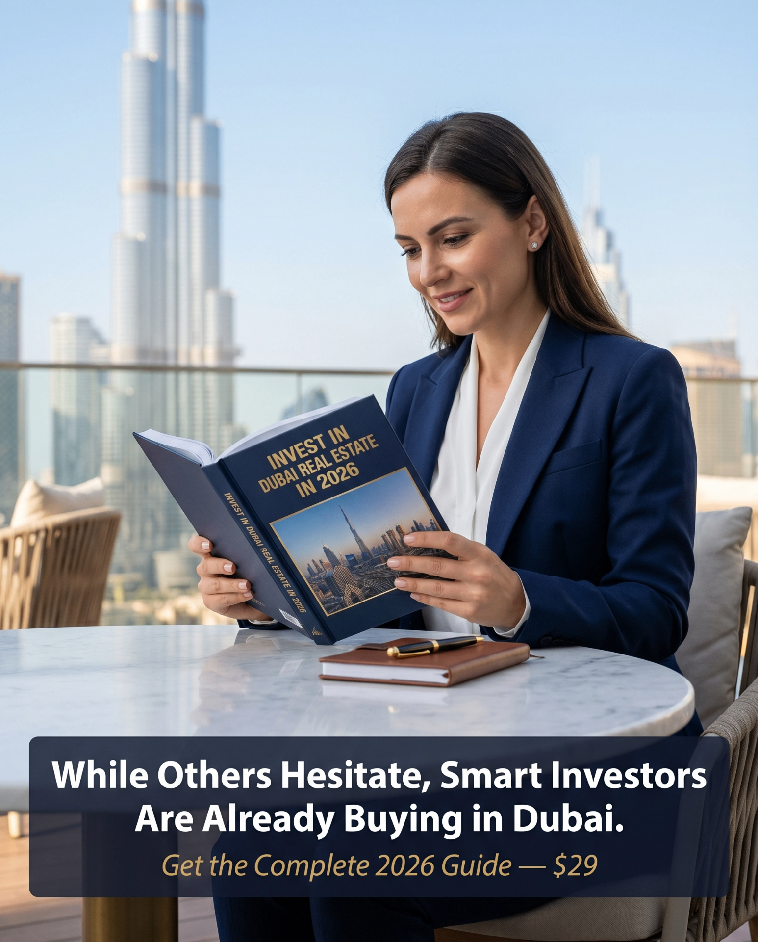 The 40-page Dubai property investment guide built on verified April 2026 DLD data. Top neighborhoods, Golden Visa AED 2M pathway, off-plan ROI, non-resident mortgages — instant PDF download, lifetime access, 30-day refund.